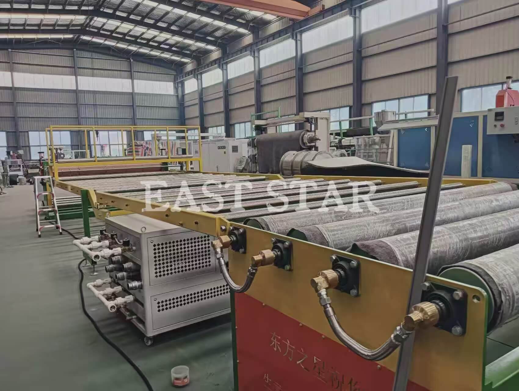 · త్రీ-రోల్ క్యాలెండర్: కరిగిన ఎక్స్ట్రూడెడ్ షీట్ను చల్లబరుస్తుంది మరియు మెరుగుపరుస్తుంది, తుది ఉత్పత్తి యొక్క మందం మరియు ముగింపును ఖచ్చితంగా నియంత్రిస్తుంది.