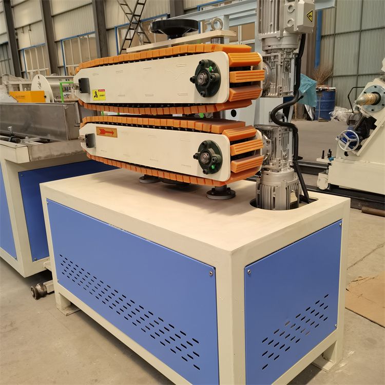 PP/PC ల్యాంప్ షేడ్ ఎక్స్ట్రూషన్ ప్రొడక్షన్ లైన్ ప్రధానంగా ఎక్స్ట్రాషన్ హోస్ట్, షేపింగ్ టేబుల్, బెల్ట్ ట్రాక్షన్ మెషిన్ మరియు కట్టింగ్ రాక్తో కూడి ఉంటుంది. ఎక్స్ట్రూషన్ హోస్ట్ వేరియబుల్ ఫ్రీక్వెన్సీ స్పీడ్ రెగ్యులేషన్తో సింగిల్-స్క్రూ ఎక్స్ట్రూడర్ను స్వీకరిస్తుంది. ఇది ఉత్పత్తుల యొక్క వివిధ స్పెసిఫికేషన్ల ప్రకారం కాన్ఫిగర్ చేయబడుతుంది. వివిధ రకాల ప్రధాన యంత్రాలు; షేపింగ్ టేబుల్ స్టెయిన్లెస్ స్టీల్ వాటర్ ట్రేని స్వీకరిస్తుంది మరియు దేశీయ ప్రసిద్ధ బ్రాండ్ వాక్యూమ్ పంప్తో అమర్చబడి ఉంటుంది; ట్రాక్టర్ బెల్ట్ ట్రాక్షన్ను స్వీకరిస్తుంది; కట్టింగ్ మరియు అన్లోడ్ చేయడం అనేది పొజిషనింగ్ మరియు ఖచ్చితమైన కట్టింగ్ కోసం దిగుమతి చేసుకున్న రంపపు బ్లేడ్లను స్వీకరిస్తుంది.