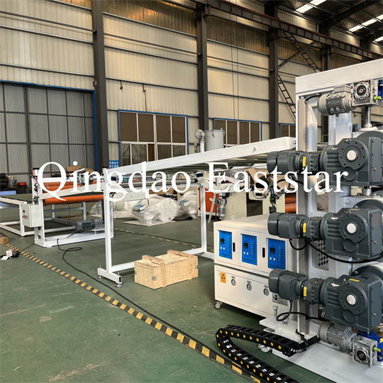 సాఫ్ట్ PVC యాంటీ-స్కిడ్ ప్లేట్ ఎక్స్ట్రూడర్ పరికరాలు: పరికరాలు ప్రధానంగా సింగిల్-స్క్రూ ఎక్స్ట్రూడర్, మూడు-రోలర్ క్యాలెండర్, 6-మీటర్ కూలింగ్ కలిగి ఉంటాయి. బ్రాకెట్, ఒక రబ్బరు రోలర్ ట్రాక్షన్ మెషిన్, ఒక మకా యంత్రం మరియు కన్వేయర్ బెల్ట్ పరికరం.