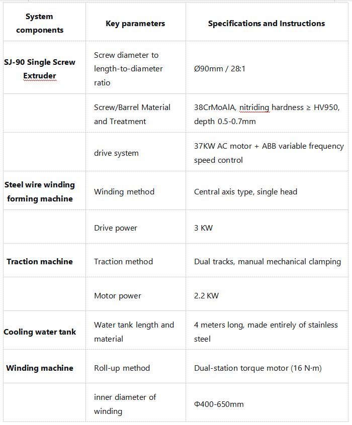 ఈ PVC స్టీల్ వైర్ రీన్ఫోర్స్డ్ హోస్ ఎక్స్ట్రూషన్ ప్రొడక్షన్ లైన్ అధిక-పనితీరు గల స్టీల్ వైర్ రీన్ఫోర్స్డ్ గొట్టాలను ఉత్పత్తి చేయడానికి అనువైన ఎంపిక: