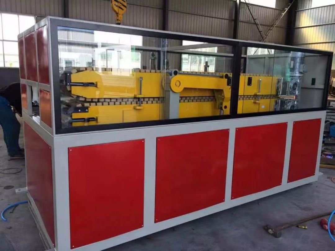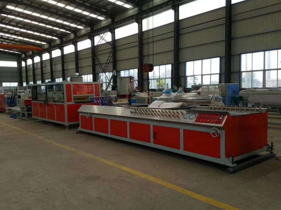 PVC వాల్ ప్యానెల్ ప్రొడక్షన్ లైన్ ప్రధానంగా శంఖాకార ట్విన్-స్క్రూ ఎక్స్ట్రూడర్, వాక్యూమ్ షేపింగ్ టేబుల్, ట్రాక్టర్, కట్టింగ్ మెషిన్ మరియు మెటీరియల్ రిసీవింగ్ రాక్తో కూడి ఉంటుంది.